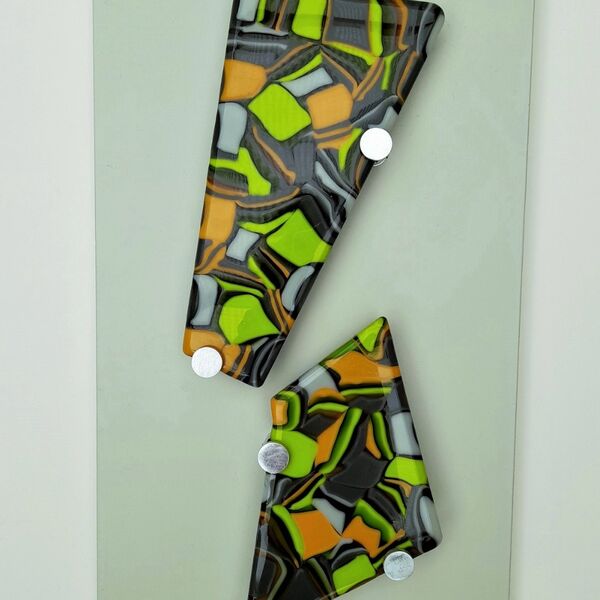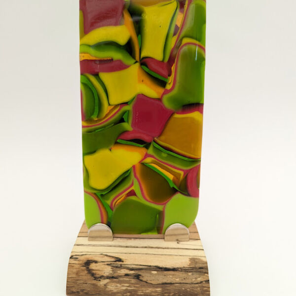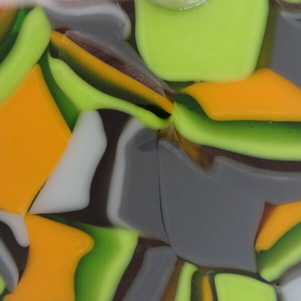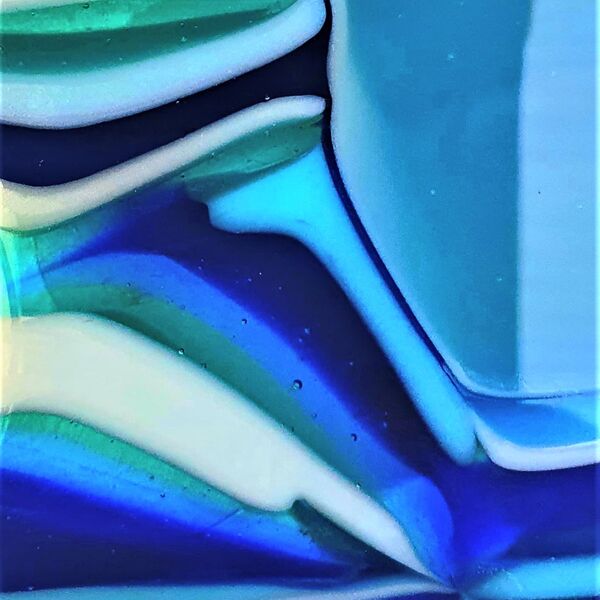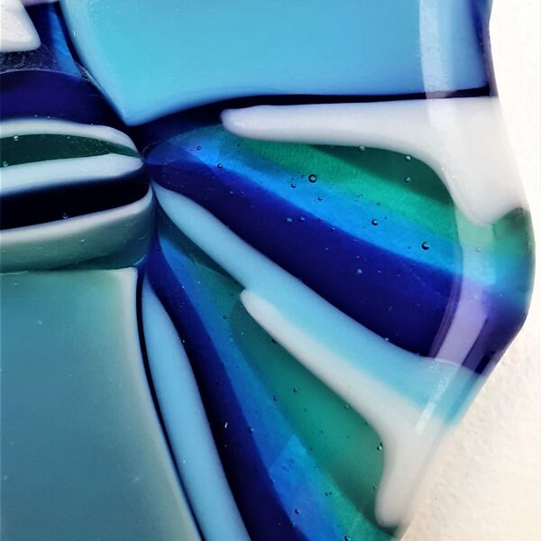 This technique involves fusing strips of different coloured glass together and then cutting into pieces - imagine liquorice allsorts! The pieces are then arranged within a dam and heated slowly to merge and flow together to create intricate patterns. Each firing can produce surprising results so it's always exciting to open the kiln and discover how the glass patterns have formed.