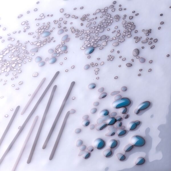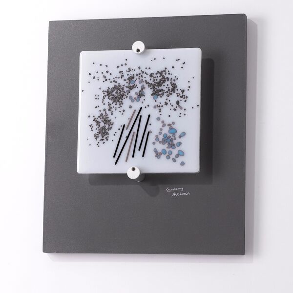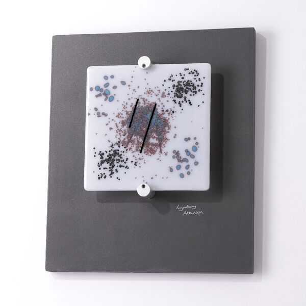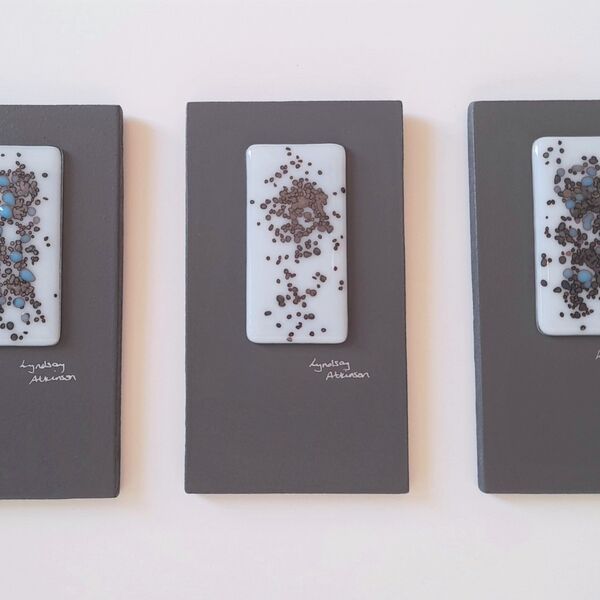 A chemical reaction is produced when certain glass types containing copper are fused together. The results can vary and I particularly like the lovely metallic halo created around the cyan colour glass frits.